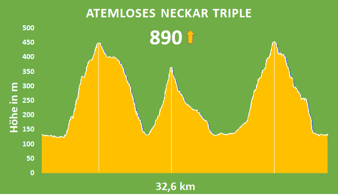 Ausgewählte Panorama Anstiege im unmittelbaren Umfeld von Eberbach mit einem Höhenpunkt in Moosbrunn. Immer wieder kehrende Weitblicke ins Neckartal, eröffnen ungeahnte Perspektiven. Der gewählte Wechsel zwischen Waldwegen und großteils einsamen Asphaltwegen sorgen für Abwechslung. Die in Summe 3 Anstiege in sehr enger und teilweise steiler Taktung machen auch erprobte Bergzeigen atemlos.